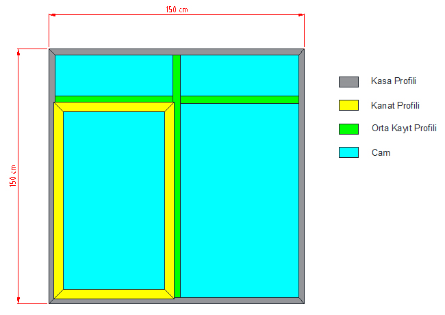 - Kullanılan ana profiller (kasa profili, kanat profili, orta kayıt profili),
