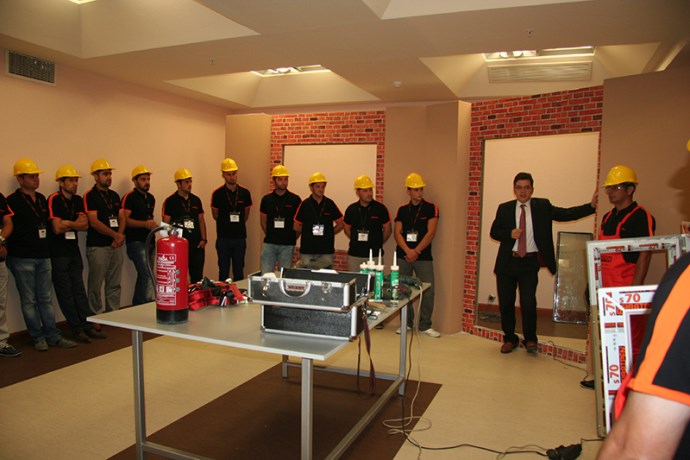 Fırat Kalite Müdürü Sn. Mutlu SÜNER ise "FIRAT Bayilerinin PVC Pencere-Kapı montaj ustalarına, 14UY0195-3 PVC Doğrama Montajcısı Ulusal Meslek Standardına göre kalite, iş sağlığı-güvenliği ve çevre konularında FIRAT EĞİTİM ENSTİTÜSÜ’nde eğitim vermeye başladıklarını, bu eğitimlerin sonunda da montaj ustalarının, bağımsız ve tarafsız bir şekilde, Mesleki Yeterlilik Kurumu ile ön protokol imzalamış CTC Belgelendirme Merkezi ve Eğitim AŞ firması tarafından sınava tabi tutulacaklarını belirtti.