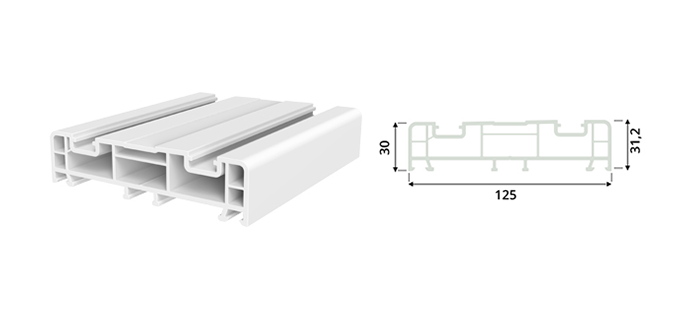 - Система имеет корпус шириной 125 мм и ширину створки 50 мм.